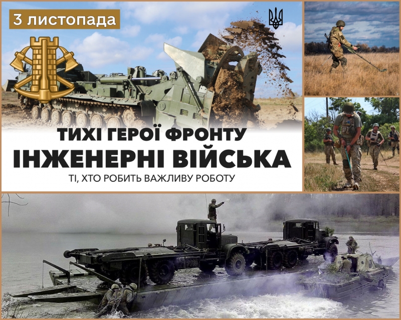 Щиро вітаємо мужніх, розумних і винахідливих воїнів та ветеранів – інженерів Збройних Сил України з професійним святом! Ви першими йдете дорогою війни, розміновуєте, будуєте переправи, укріплення, рятуєте життя та забезпечуєте безпеку наших Захисників. Ваша робота – це поєднання знань, відваги й самопожертви.