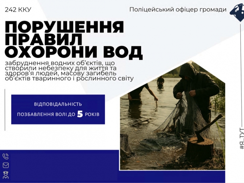 5)за порушення правил охорони вод, забруднення водних об’єктів, що створили небезпеку для життя та здоров’я людей, масову загибель об’єктів тваринного і рослинного світу – позбавлення волі до 5 років.