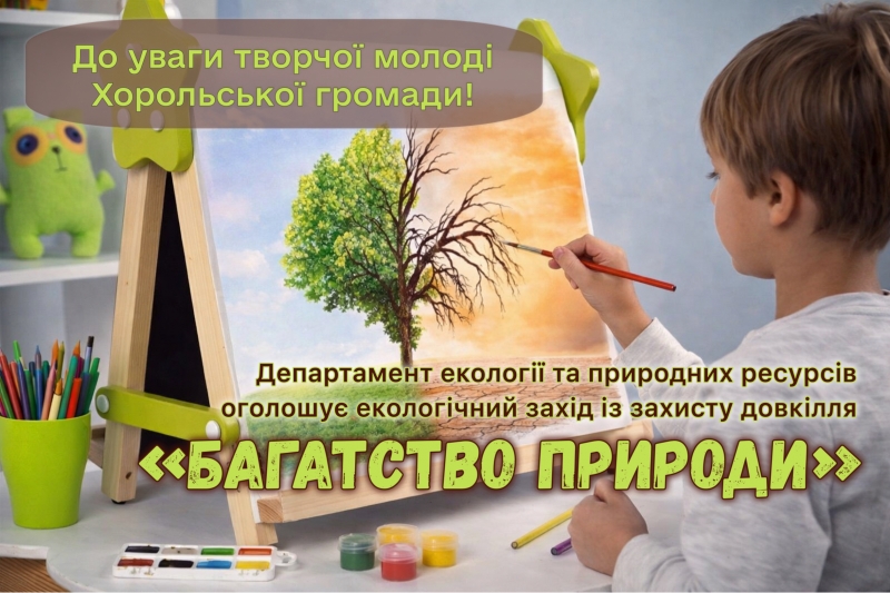 З 01 по 24 квітня 2026 року Департаментом екології та природних ресурсів ПОВА проводиться екологічний захід із захисту довкілля «Багатство природи». Акція приурочена до Всеукраїнського дня навколишнього середовища, який цього року відзначається 18 квітня.