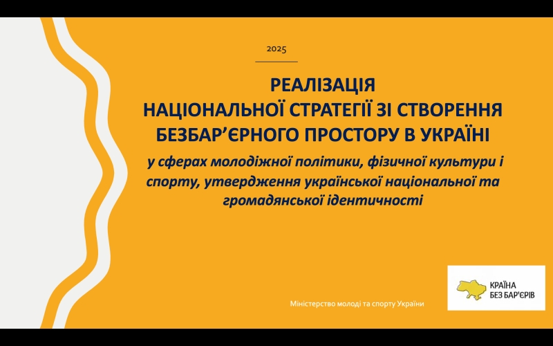 Реалізація національної Стратегії зі створення безбар'єрного простору в Україні у сферах молодіжної політики, фізичної культури і спорту, утвердження української національної та громадянської ідентичності. Презентаційні матеріали – завантажити.