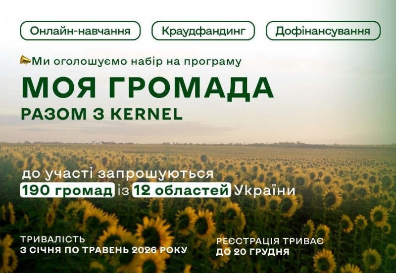 Благодійний фонд «Разом з Kernel» спільно з громадською організацією «Соціальна платформа «Моє місто» запрошує долучитися до Нової хвилі програми „Моя громада: Разом з Kernel” з метою проходження навчання, отримання підтримки та шансу виграти фінансування на реалізацію соціальних проєктів.
