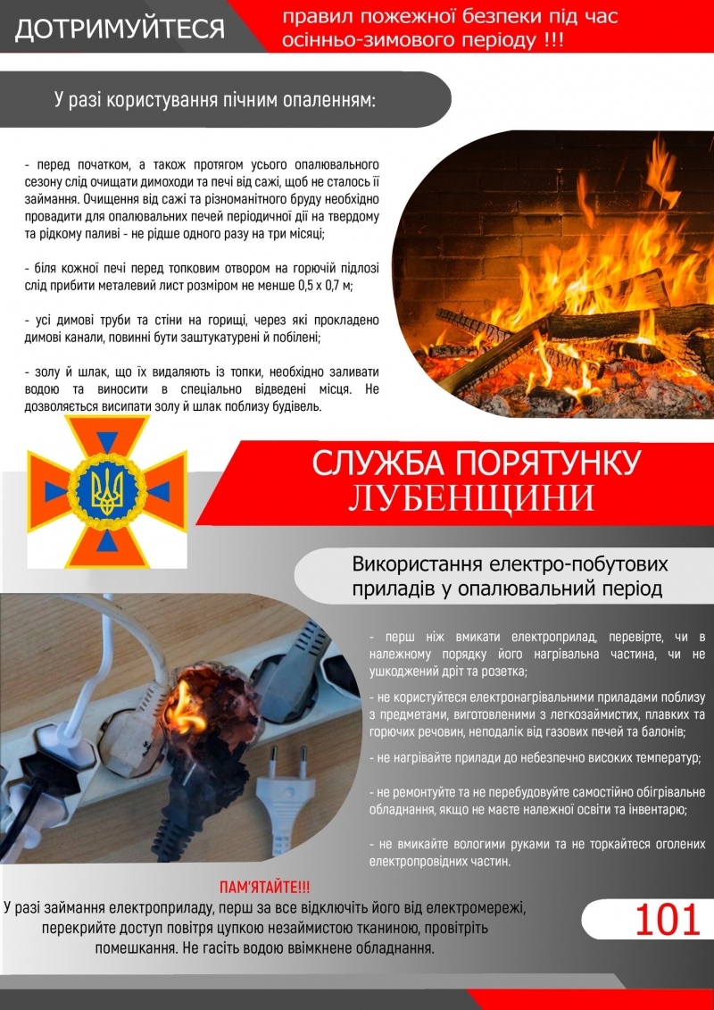 Дотримуйтесь правил пожежної безпеки! Це допоможе надійно захистити вас та ваш будинок від пожежі! Бережіть себе та своїх близьких! При виникненні пожежі негайно викликайте рятувальників за номером телефону «101».
