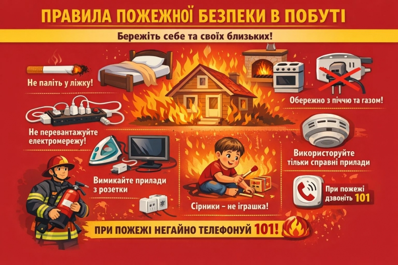 - подбайте про захист помешкання при користуванні пічним та газовим опаленням. Дотримуйтесь норм встановлення та правила користування;