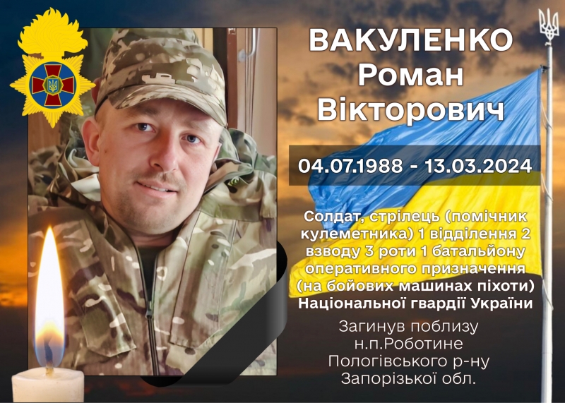 Вічна шана і слава Герою Роману Вакуленку. Не забудемо його добре імʼя, не забудемо славний подвиг.