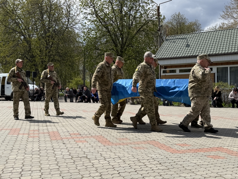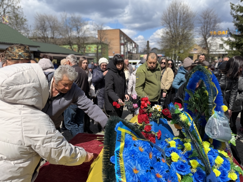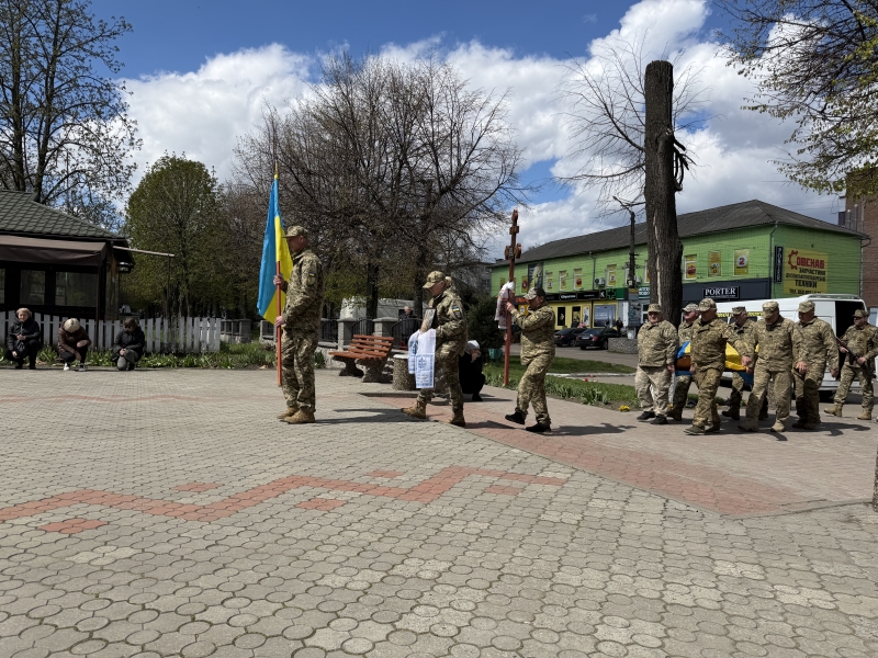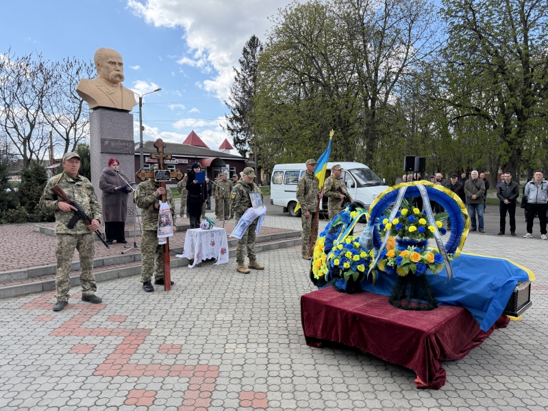 У вівторок, 21 квітня 2026 року, на площі біля пам’ятника Тарасові Шевченкові відбулася траурна церемонія прощання. Під звуки жалобної мелодії та молитви громада схилила голови перед подвигом Воїна. Зі щемливим словом до рідних і присутніх звернулася секретар міської ради Юлія Бойко, висловивши щирі співчуття та слова вдячності за сина України, який віддав найдорожче – своє життя за свободу й незалежність держави.