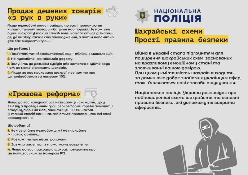 Незважаючи на постійну профілактичну роботу серед населення, довірливість громадян продовжує грати на руку шахраїв, які задля отримання незаконної наживи, не нехтують нічим. Останнім часом знову значно зріс вчинення шахрайств, майже кожного дня до відділення поліції №2 звертаються місцеві мешканці із заявами, що їх ошукали!