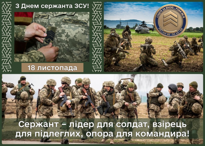 Сьогодні вшановуємо тих, хто є основою військової міці та непохитної дисципліни нашого війська – українських сержантів. Саме на ваші плечі лягає найскладніша та найвідповідальніша місія – бути серцем підрозділу, мудрими наставниками для молодших військових і надійною опорою для командирів.