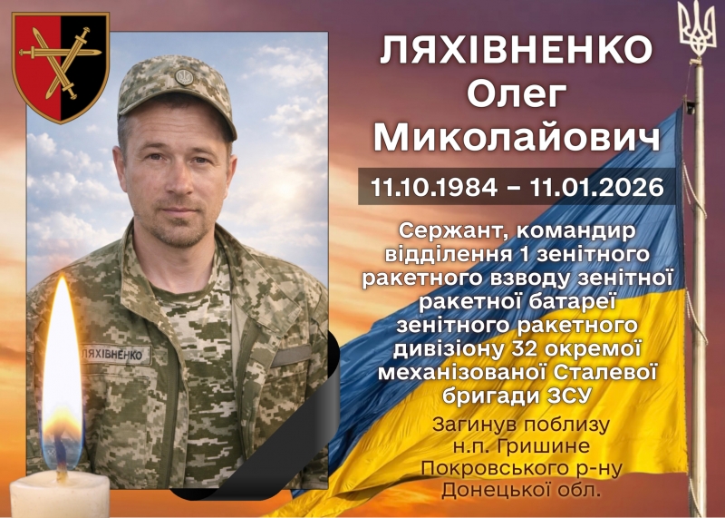 Увага! Траурна церемонія прощання та чин поховання відбудеться у середу, 21 січня 2026 року о 12:00 год. в с.Єрківці Покровськобагачанського округу. День поховання Героя Олега Ляхівненка, 21 січня, оголошується днем жалоби на території Хорольської міської територіальної громади відповідно до розпорядження міського голови. На знак скорботи за загиблим Захисником прохання приспустити Державний Прапор України на адміністративних будівлях, підприємствах та організаціях громади. У цей день забороняється проведення розважальних заходів, а також звучання музики та рекламних аудіороликів у громадських місцях.